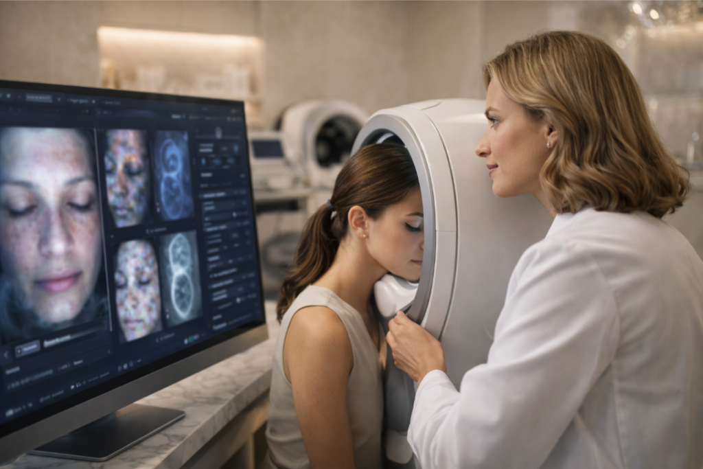 • AI Diagnostic Tools: For predicting skin aging and tracking improvement. Early skin cancer detection uses advanced imaging technology.